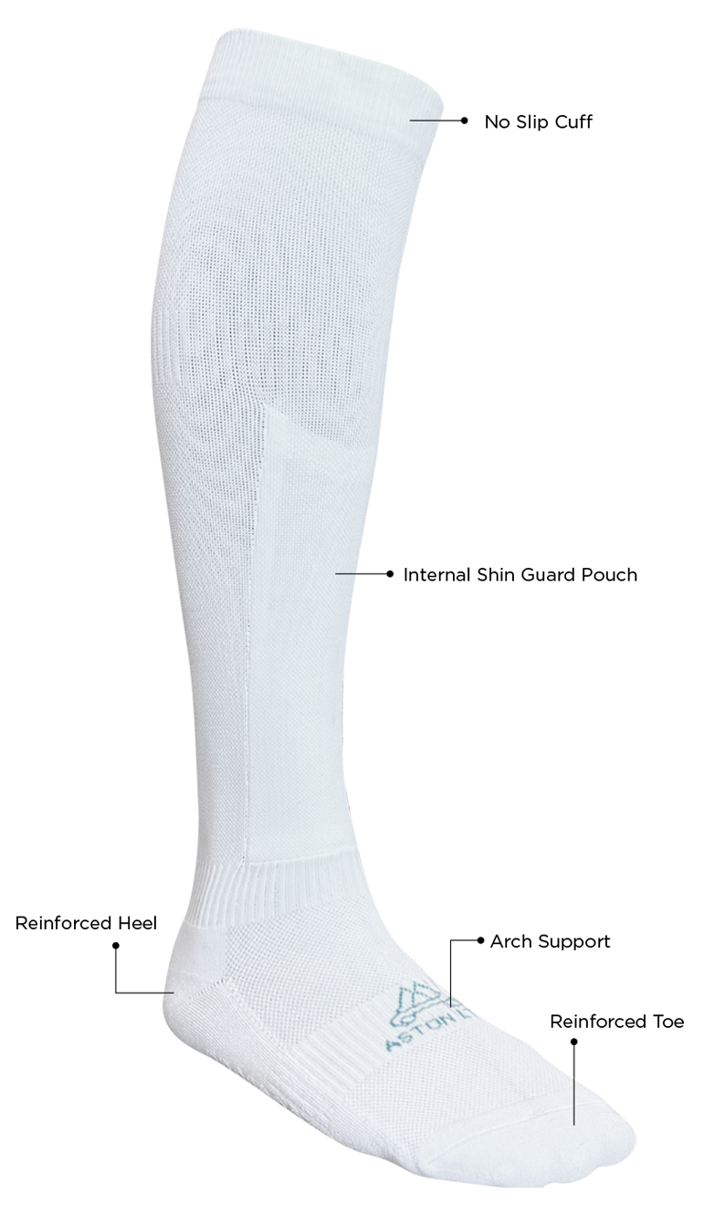 At Aston Ltd, we’re redefining what a soccer sock can do. Our ALL IN and Essential Soccer Socks feature a built-in shin guard pocket and a secure fit that helps keep shin guards in place. No more pre-wrap, guard sleeves, or cut socks with tape. These socks simplify the routine for players and parents alike.